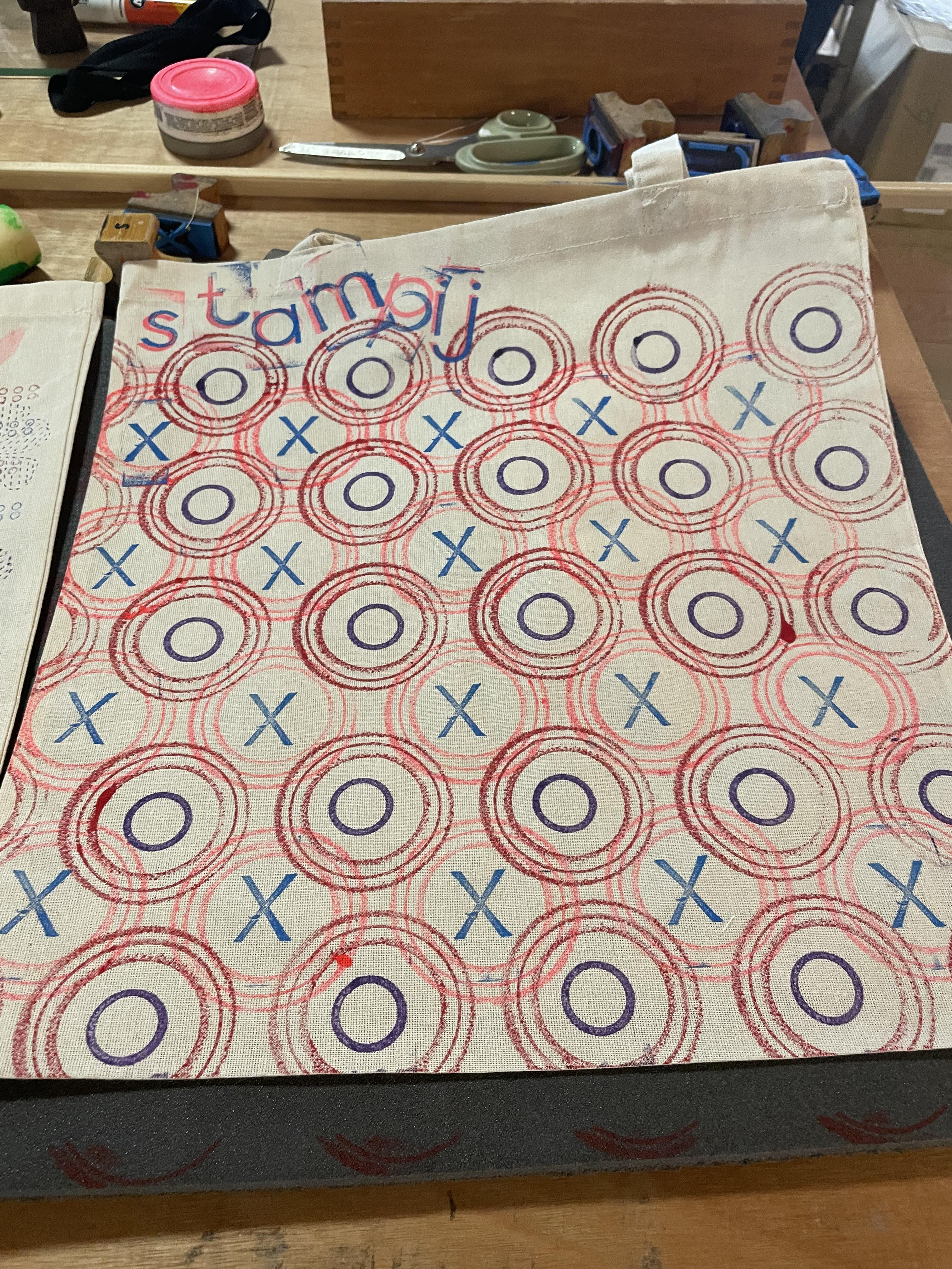 Oude kledingstukken, tassen of lappen stof om op te drukken